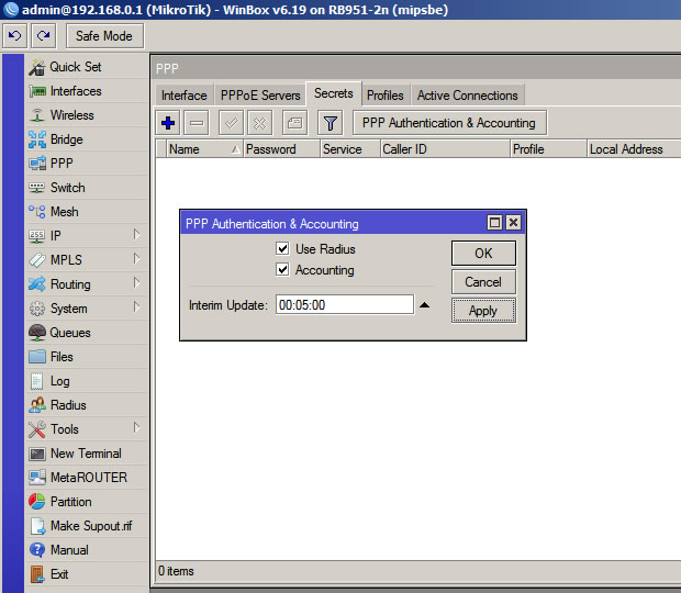 em Athentication e Accounting tem a opção Use radius e Accounting, deixa ativa somente Accounting...